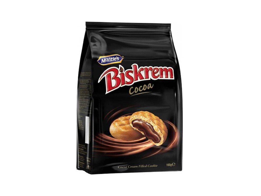 Krehké svetlé sušienky plnené jemným kakaovým krémom, balenie 160 g.