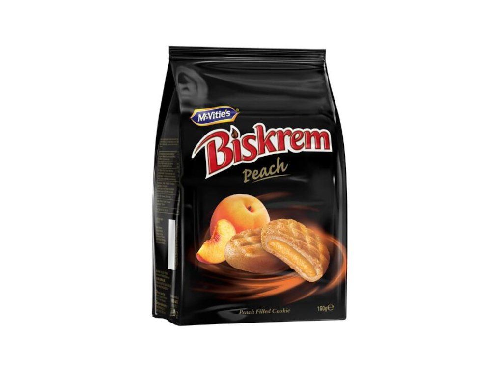 Krehké sušienky od McVitie's plnené osviežujúcou broskyňovou príchuťou, balenie 160 g.