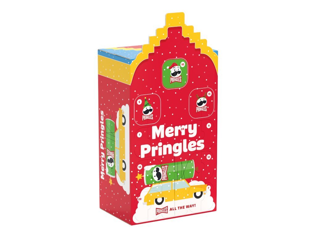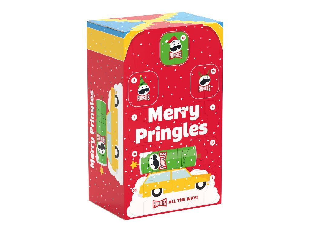Vianočný (adventný) kalendár s obľúbenými Pringles chipsami, obsahuje 23x40g balení a 1x165g balenie Pringles.