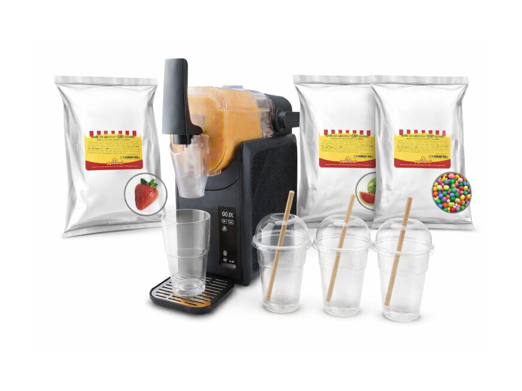 Štartovací balíček, ktorý obsahuje všetko potrebné na jednoduchú prípravu ľadovej drtě u vás doma. Nie je potrebné dokupovať žiadne suroviny ani doplnky – môžete sa tak jednoducho, rýchlo a pohodlne pustiť do výroby ľadovej drtě. Štartovací balíček môže zároveň poslúžiť aj ako originálny darček pre vašich blízkych či priateľov.